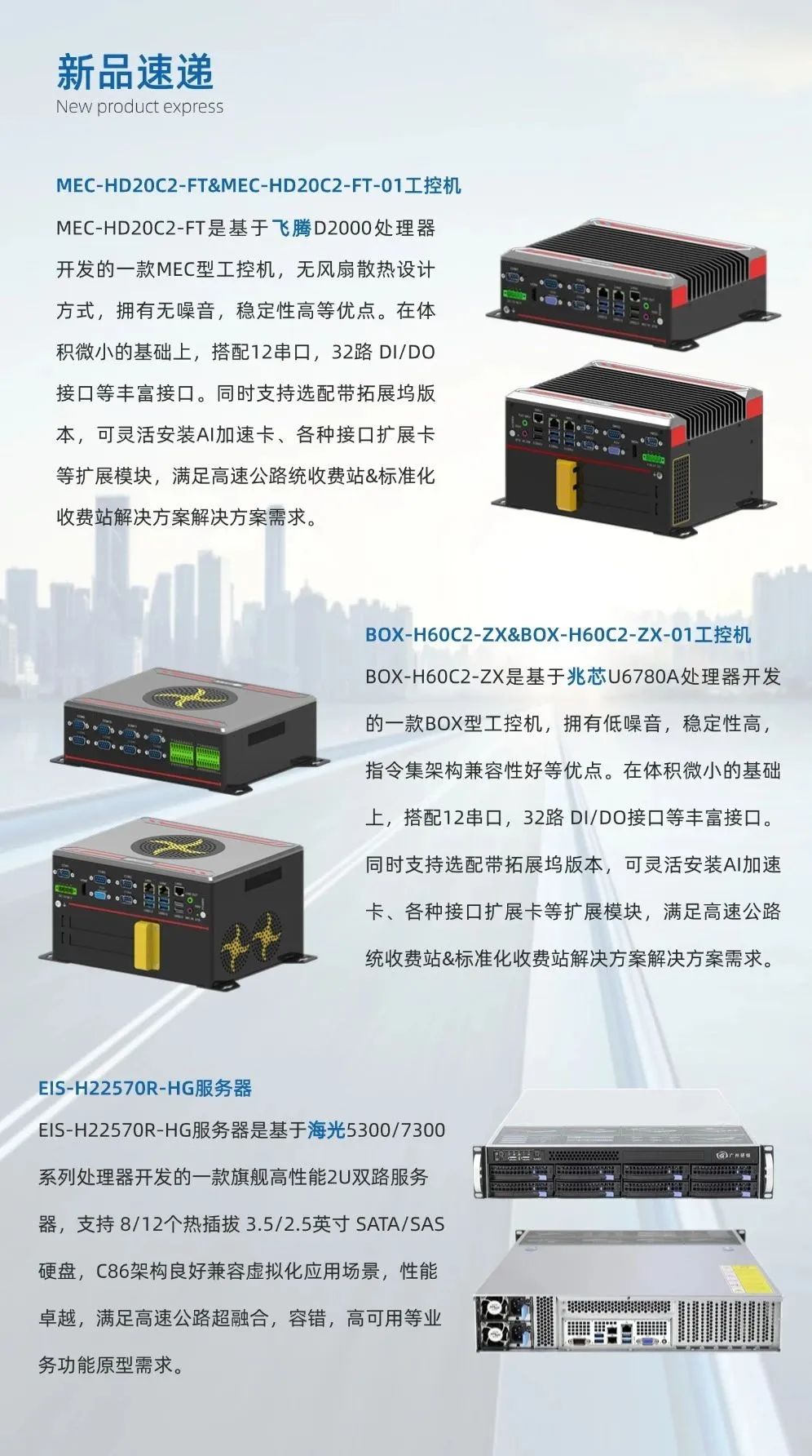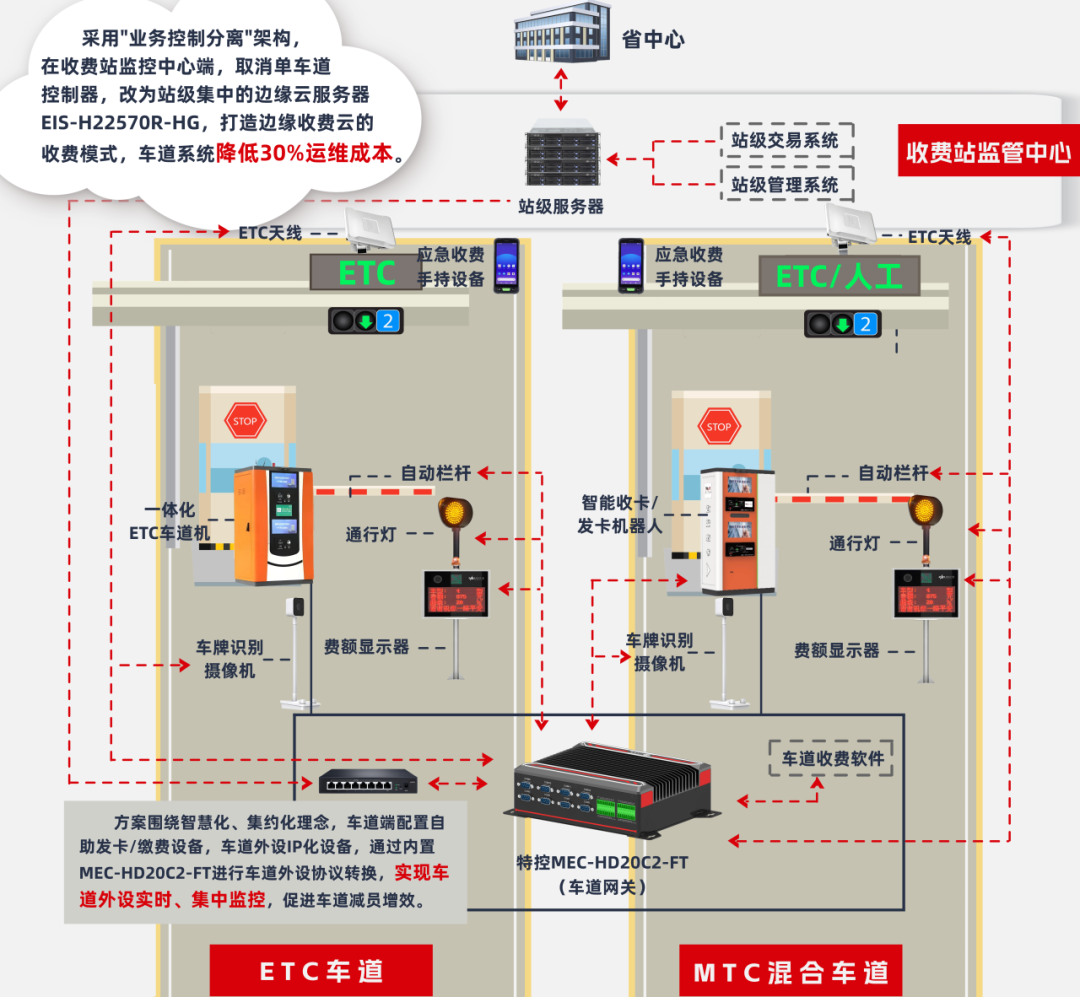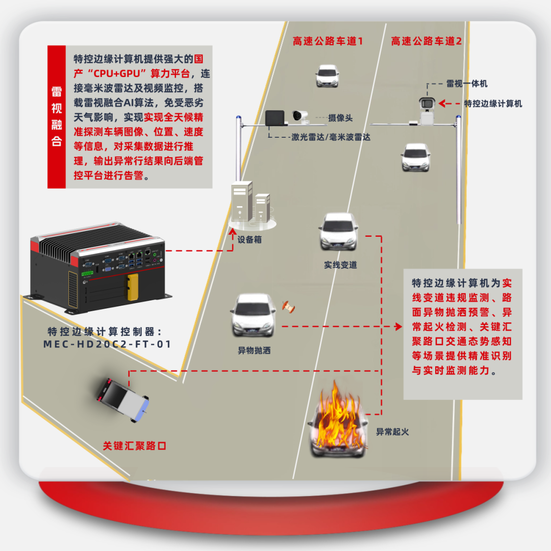 通過集成特控工控機、服務器等尖端硬件的新型智慧高速解決方案,我們不僅實現(xiàn)了收費場景的極致協(xié)同,更將事故預警與快速處置能力推向了新的高度,為高速公路裝上了“智慧之眼”,實現(xiàn)實時監(jiān)測與精準智能分析,極大地提升了高速公路的智能化、高效化與綠色化水平,為現(xiàn)代綜合交通運輸體系的構建提供了堅實的支撐。