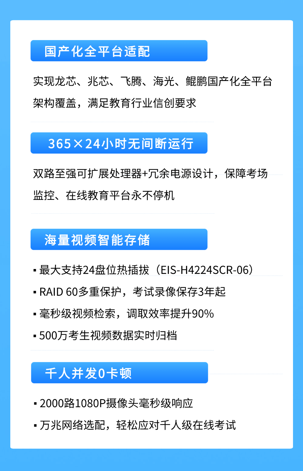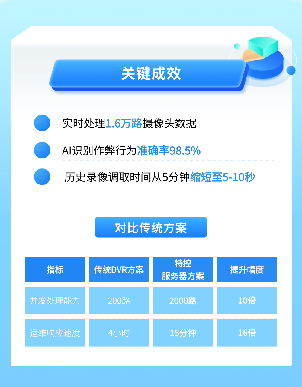 特控以雙路高性能服務(wù)器集群為核心,打造新一代智能監(jiān)考系統(tǒng),單臺設(shè)備即可實現(xiàn):