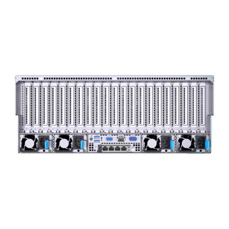 極致性能 : 支持 2 個第四代/第五代英特爾®至強®可擴展處理器,支持最高 350W 型號,計算性能強勁;最高支持 8張雙寬全高全長 GPU(可通過增加高度支持RTX 50XX系列);支持 32 個 DDR5 內存,頻率最高可達 4800MHz,內存帶寬相比上一代提升 50%。靈活擴展 : 可配置 8 個雙寬 GPU,除 8 GPU外支持1個PCIe 5.0 x16+1個PCIe 5.0 x8;存儲配置根據需求靈活更換,滿足大容量和高性能的本地存儲需求,最大支持 24 個 U.2 NVMe。智能可靠 : 支持免工具拆裝,同時系統關鍵部件均采用冗余、熱插拔設計;支持遠程 KVM、關鍵部件狀態監控、異常報警等各種管理功能。綠色節能 : 提供多種電源功率 80 PLUS 白金電源模塊,50%負載下電源模塊效率高達 94%。支持系統散熱風扇 PID(Proportional-Integral-Derivative)智能調速、CPU 智能調頻,節能降耗。全方位優化的系統散熱設計,高效節能系統散熱風扇,降低系統散熱能耗。提供功率封頂和功率控制措施。