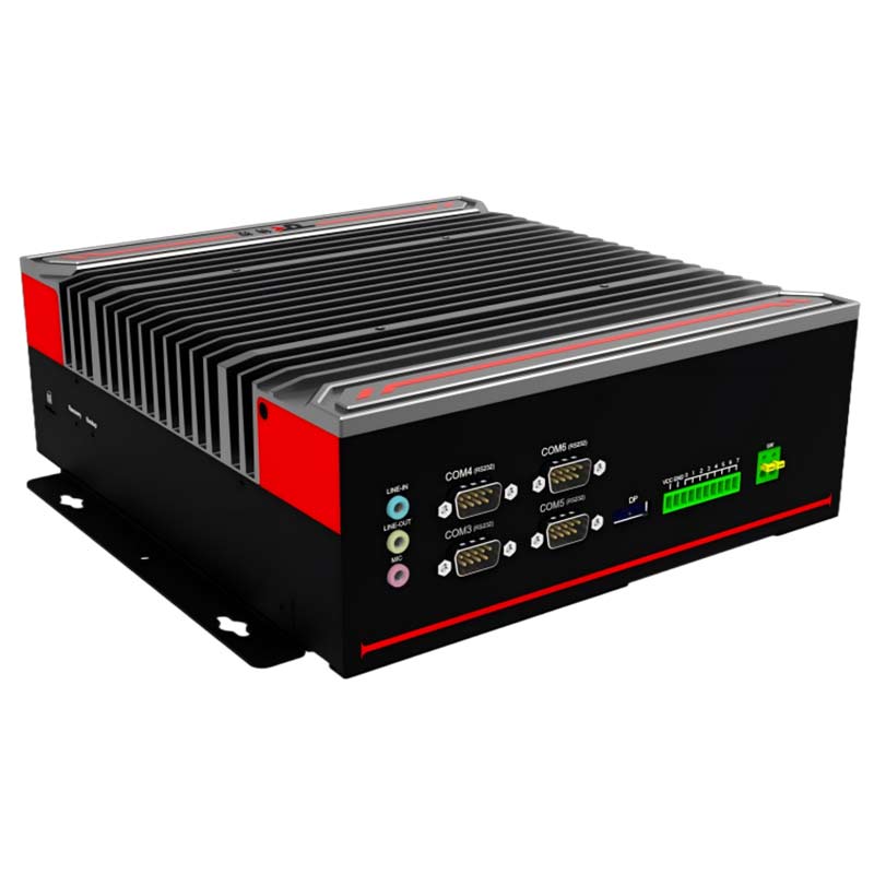 高性能 : 支持65W及以下6/7/8/9 代LGA1151 Intel Core i7/i5/i3 系列處理器 穩定可靠 : 純工業設計,強勁解熱熱管與純銅一體化的優良散熱結構,全密封鋁合金箱體,大面積鋁鰭散熱,可實現橫向與豎向等多種放置的自然對流散熱,機箱可抗接觸式6KV強電磁干擾,DC12V-24V寬壓輸入接口豐富 : 4*LAN(Intel),6*COM,支持T-MOD模塊擴展,8*GPIO(4*USB2.0/2*RJ45/2*CAN/12DI+12DO三選一擴展),4*USB3.0+4*USB2.0 1*VGA,1*HDMI,1*DP,1*遠程開關,1*一鍵還原,1*一鍵備份,1*SIM槽, 1*LINE IN,1*LINE OUT,1*MIC,1*2.5寸硬盤位,1*M.2(KEY-M,2280,PCIEx4支持SATA) , 1*M.2( KEY-B,3042/3052, PCIE+USB3.0支 持 4G/5G) , 1*MINI PCIE( 全 高 ,PCIE+USB2.0信號,支持WiFi/BT)外觀設計 : 鋁合金一體成型,結構緊湊,MiNi小巧,工藝精細,科技時尚